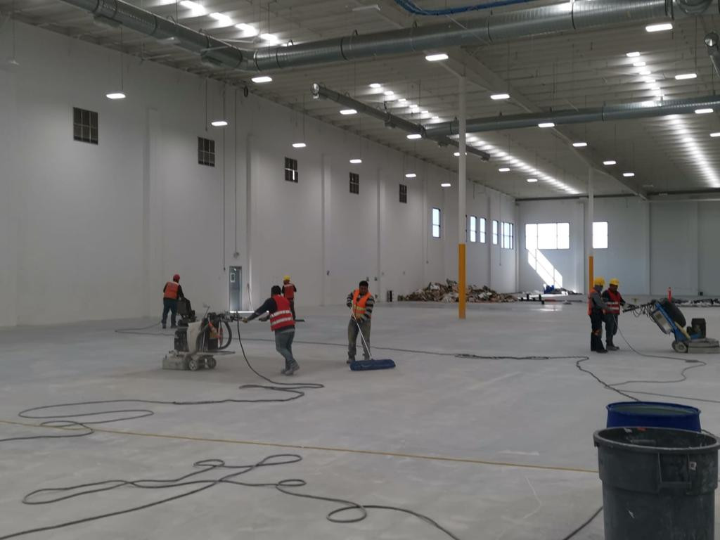 - El pulido y abrillantado fortalecen la superficie del concreto, haciéndolo más resistente a la abrasión, impactos y desgaste constante. Esto es esencial en fábricas y grandes espacios comerciales con tráfico intenso y maquinaria pesada.